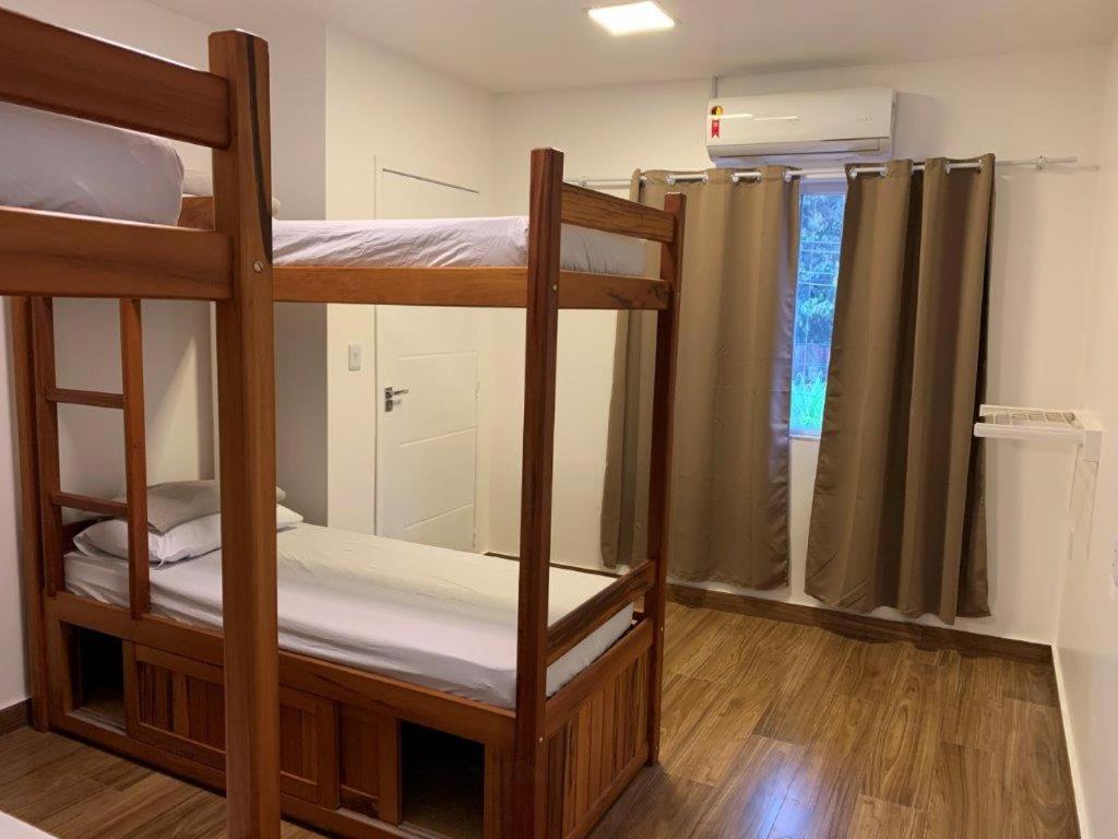 Cama em Dormitório Misto com 6 Camas. This bed in dormitory has a tilemarble floor and air conditioning. ;