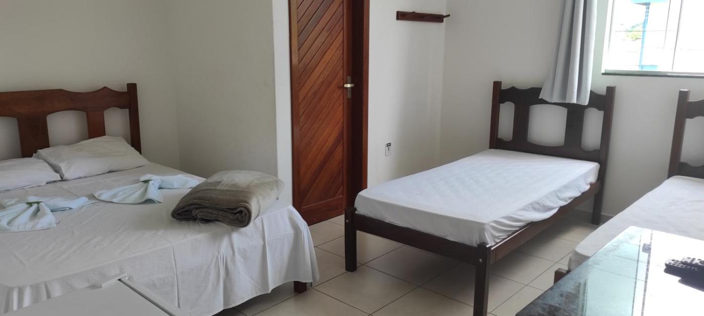 Quarto Triplo. The triple room offers air conditioning, a tea and coffee maker, as well as a private bathroom featuring a shower. This triple room provides a dining area, a flat-screen TV and city views. The unit offers 4 beds. ;