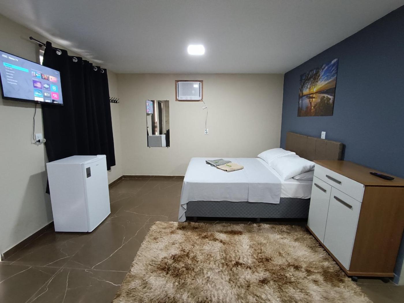 Chalé com 1 Quarto. This chalets special feature is the pool with a view. This air-conditioned chalet consists of 1 living room, 1 separate bedroom and 1 bathroom with a shower. Guests will find a stovetop, a refrigerator, kitchenware and an oven in the fully equipped kitchen. The chalet also offers a barbecue. Featuring a balcony with garden views, this chalet also provides a minibar and a flat-screen TV with satellite channels. The unit offers 1 bed.