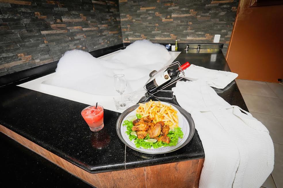 Suite com Banheira de Hidromassagem. The spa bath is the standout feature of this suite. Boasting a private entrance, this air-conditioned suite comes with 1 living room, 1 separate bedroom and 1 bathroom with a shower and a hairdryer. This suite has a minibar, a tiled floor, a flat-screen TV with cable channels and garden views. The unit has 1 bed. ;