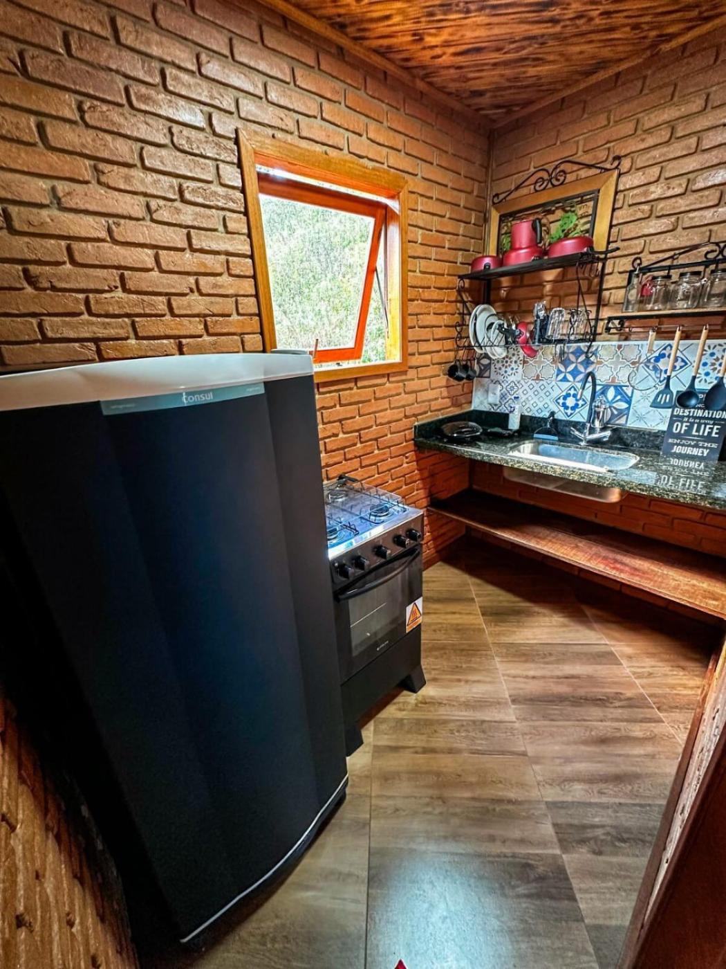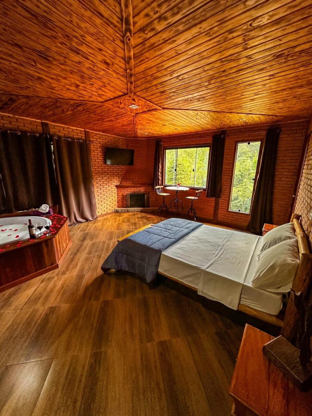 Chalé com 1 Quarto. This luxurious chalet offers a hot tub, a spa bath and a fireplace. Guests can make meals in the kitchen that features a stovetop, a refrigerator, kitchenware and a tea and coffee maker. Boasting a terrace with garden views, this chalet also features a private entrance and a flat-screen TV with cable channels. The unit has 1 bed.