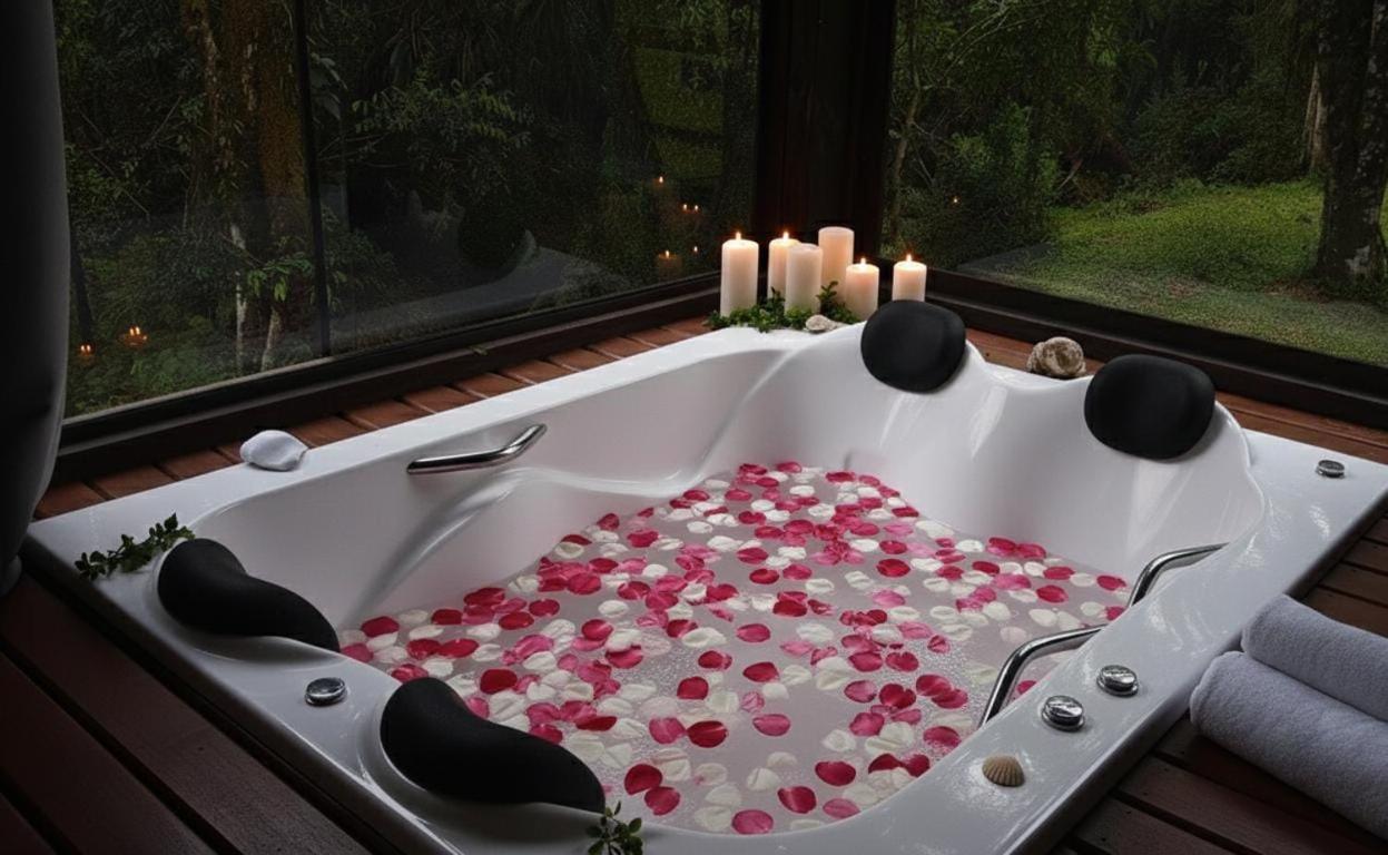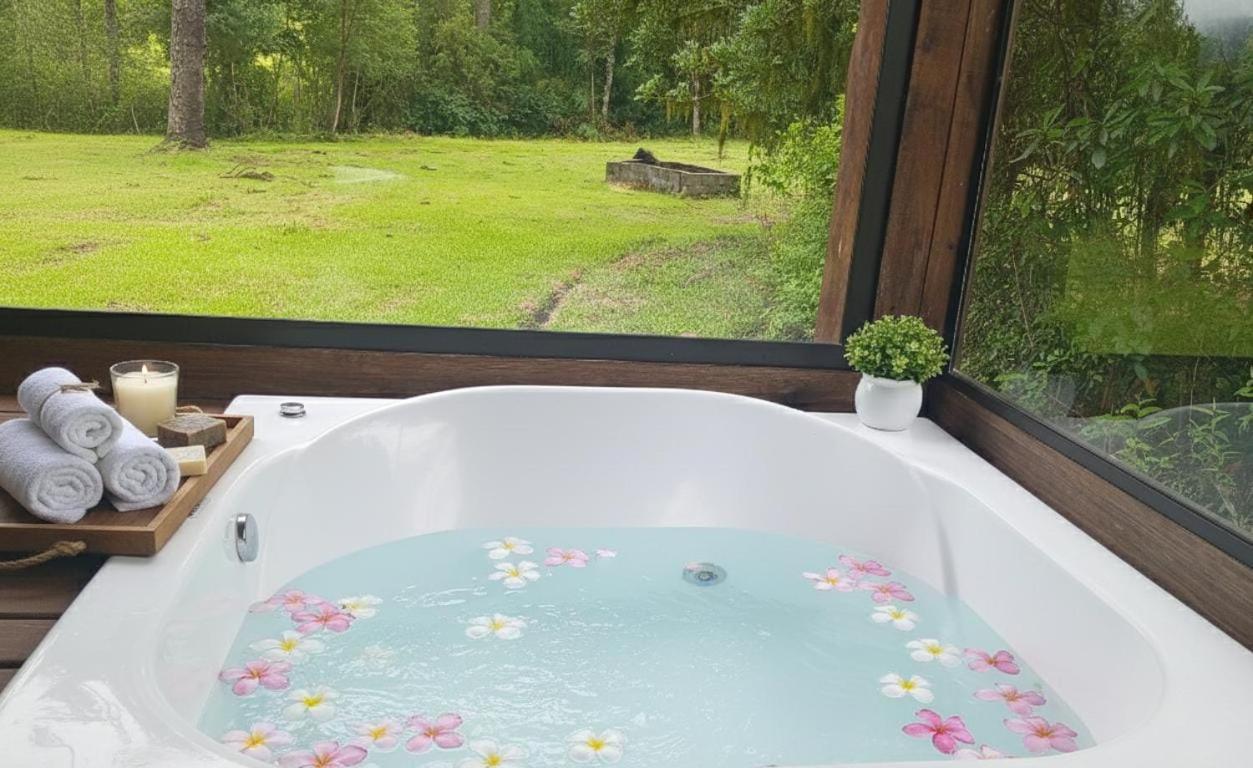 Chalé. This chalets special feature is the hot tub. Featuring a private entrance, this air-conditioned chalet comprises 1 bedroom and 1 bathroom with a bath and a shower. This chalet provides a tea and coffee maker, a flat-screen TV and river views. The unit offers 1 bed.