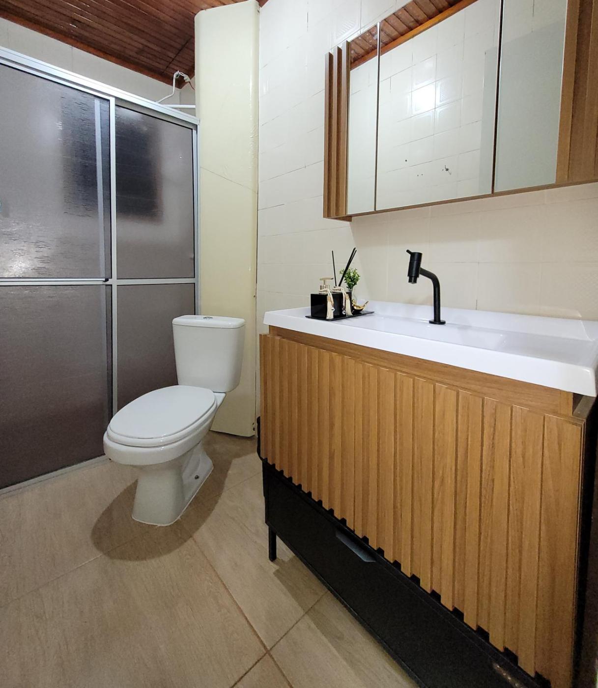 Casa de 1 Quarto. This holiday home features 1 living room, 1 separate bedroom and 1 bathroom with a shower and a hairdryer. Guests will find a stovetop, a refrigerator, kitchenware and an oven in the kitchen. The holiday home also comes with a barbecue. The holiday home features a tea and coffee maker, a dining area, a wardrobe, a flat-screen TV, as well as garden views. The unit has 3 beds.