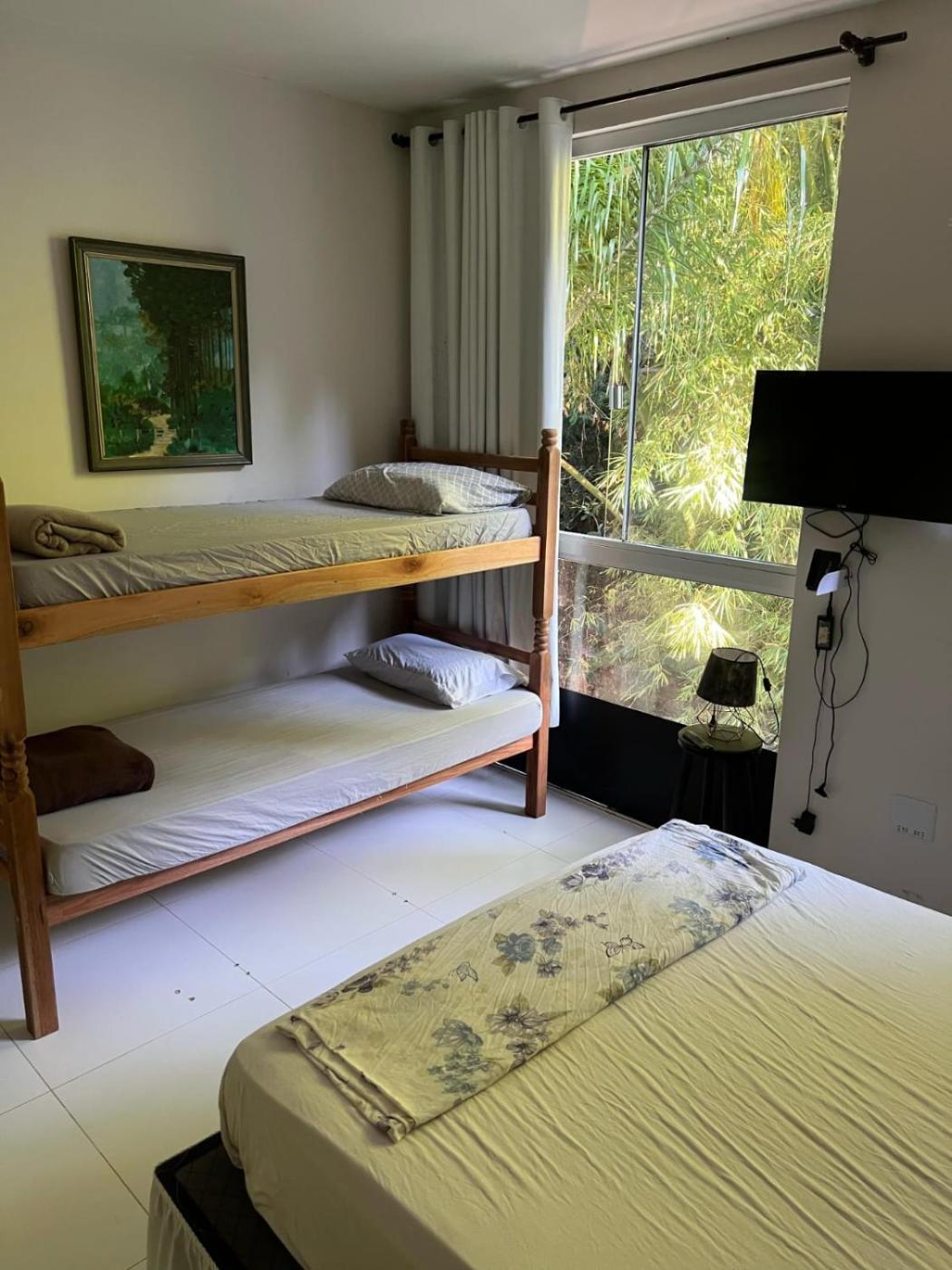 Quarto Quádruplo. The quadruple room offers a tiled floor, as well as a shared bathroom boasting a shower. The air-conditioned quadruple room features a flat-screen TV, a minibar, a wardrobe, a computer as well as mountain views. The unit has 2 beds. ;