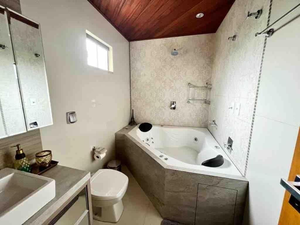 Casa com 2 Quartos. The hot tub is the standout feature of this holiday home. Boasting a private entrance, this air-conditioned holiday home features 1 living room, 2 separate bedrooms and 2 bathrooms with a bath and a shower. Guests will find a stovetop, a refrigerator, kitchenware and an oven in the well-fitted kitchen. The holiday home also comes with a barbecue. This holiday home has a washing machine, a minibar, a flat-screen TV and a patio. The unit has 2 beds.