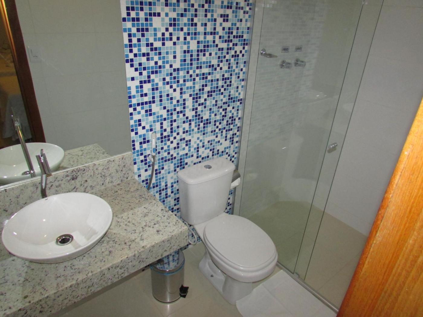 Quarto Duplo Standard. This guestroom features a private and modern bathroom. It also offers a flat-screen TV and minibar. Wi-Fi is free. ;