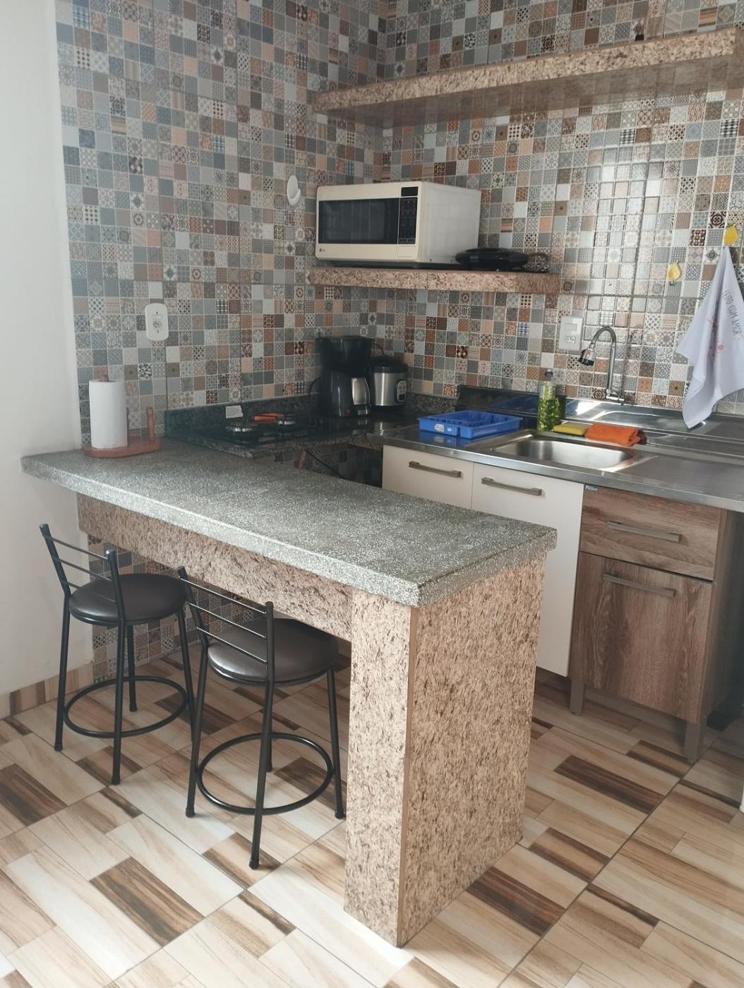 Apartamento com 1 Quarto. The apartments kitchen is available for cooking and storing food. The unit has 2 beds.