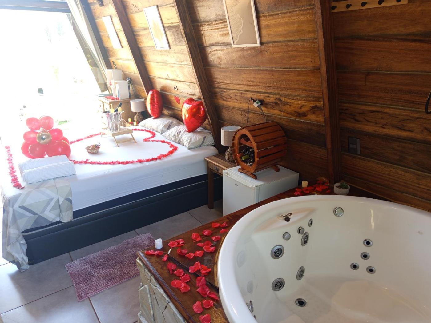 Chalé com 1 Quarto. This chalets special feature is the hot tub. The chalets kitchenette is available for cooking and storing food. Featuring a balcony with garden views, this chalet also provides a minibar and a flat-screen TV. The unit offers 1 bed.