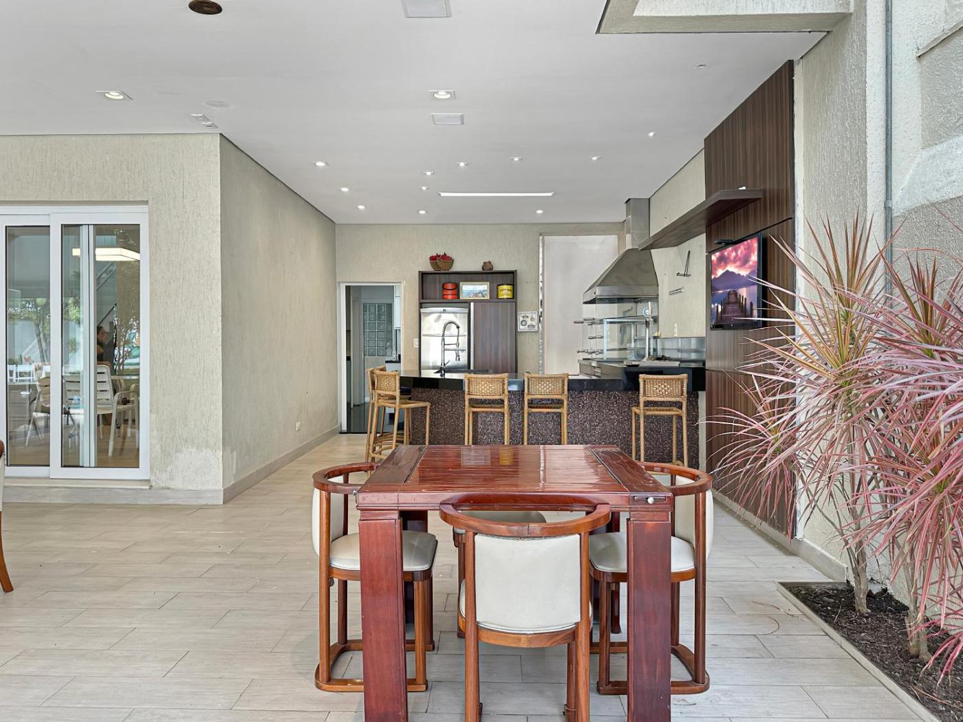 200m do mar - AC - 1 Suite - Piscina - Churrasqueira tem uma piscina exterior, jardim, um salão partilhado e terraço no Guarujá. O alojamento está a cerca de 3 minutos a pé de Praia da Enseada, a 5,4 km de Terminal Rodoviário do Guarujá e a 44 km de Parque Estadual Restingas de Bertioga. O alojamento apresenta uma cozinha partilhada e acesso Wi-Fi gratuito em toda a propriedade.