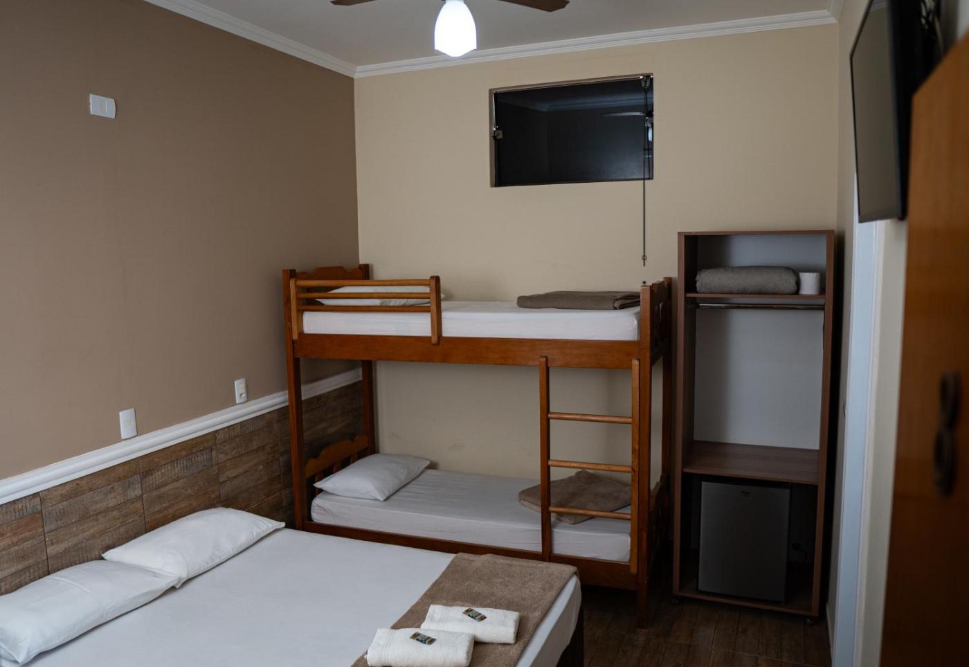 Quarto Quádruplo Standard. This quadruple room is comprised of a flat-screen TV with streaming services, a private bathroom as well as a patio. The unit has 2 beds. ;