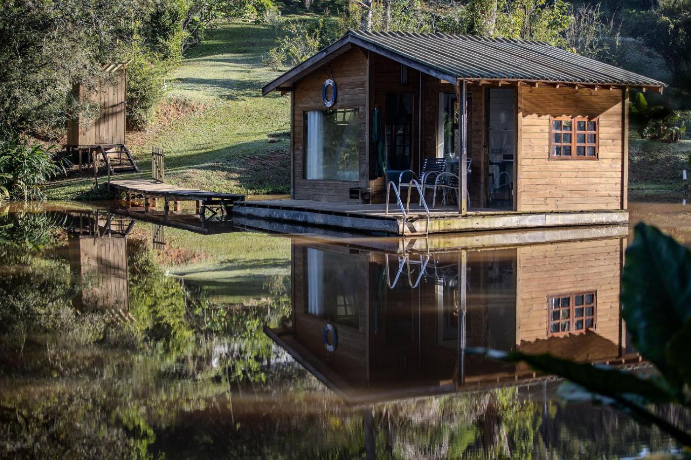 Quinta do Vale: Casa flutuante, 90km de SP - Lago, cascata, piscina, tranquilidade disponibiliza pequeno-almoço buffet.
