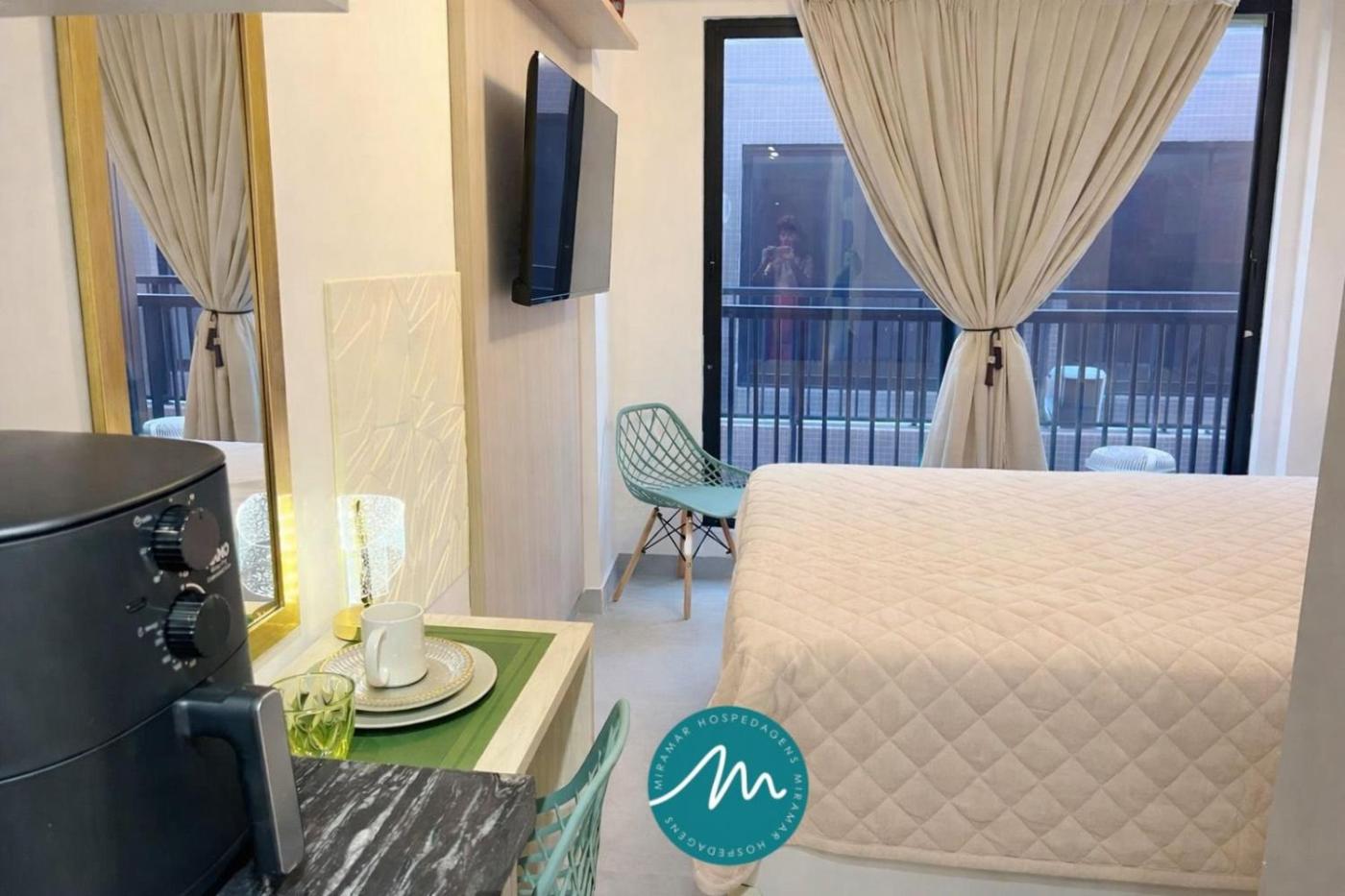 EstĆŗdio. The pool with a view is a top feature of this studio. The studios kitchen, which has a microwave, is available for cooking and storing food. This studio features a coffee machine, a TV and a balcony. The unit has 1 bed.