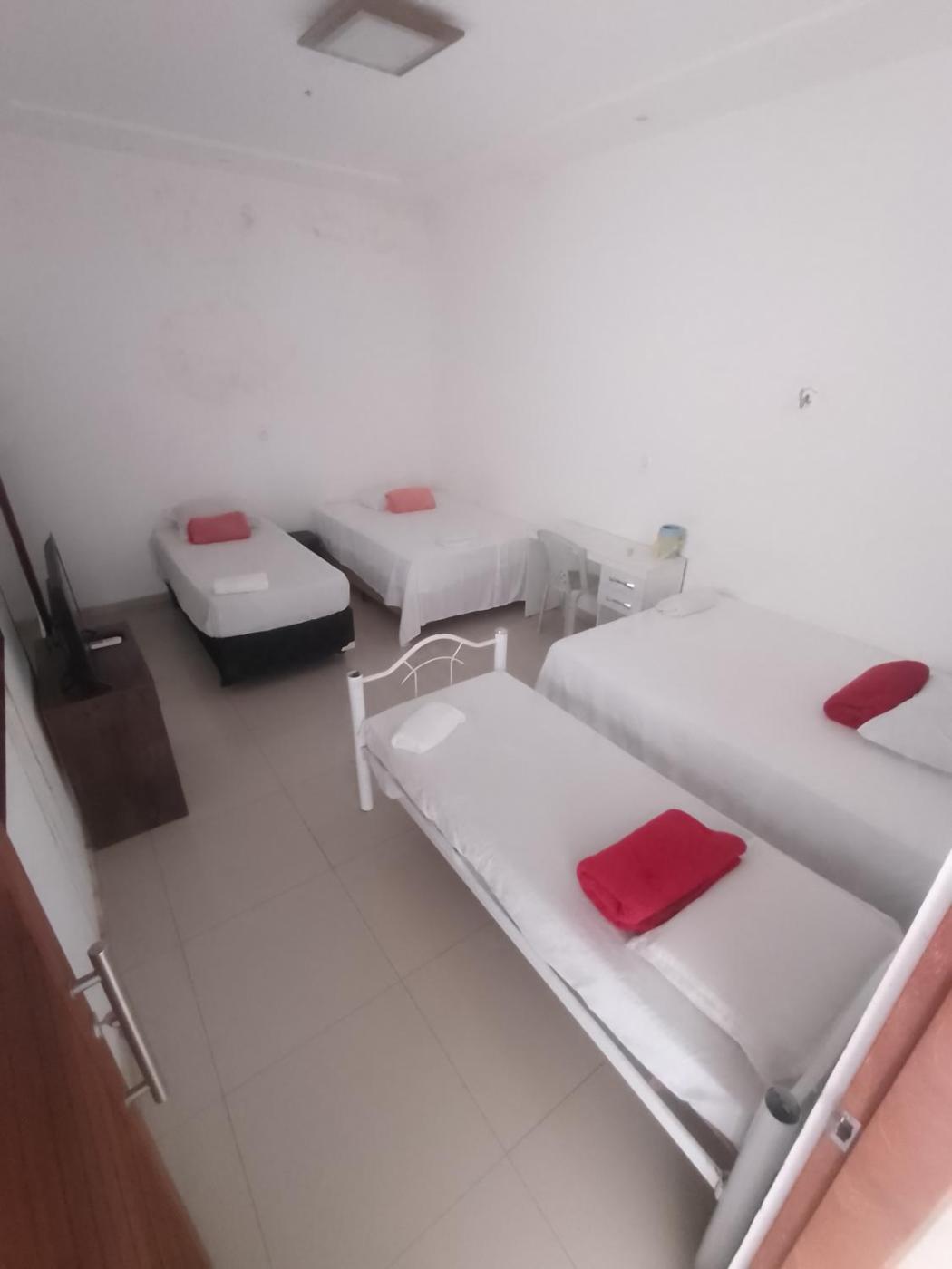 Quarto Triplo Básico. Meals can be prepared in the kitchen, which has a stovetop, a refrigerator, kitchenware and a toaster. This air-conditioned triple room is comprised of a flat-screen TV with streaming services, a private bathroom as well as a balcony with city views. The unit has 3 beds.