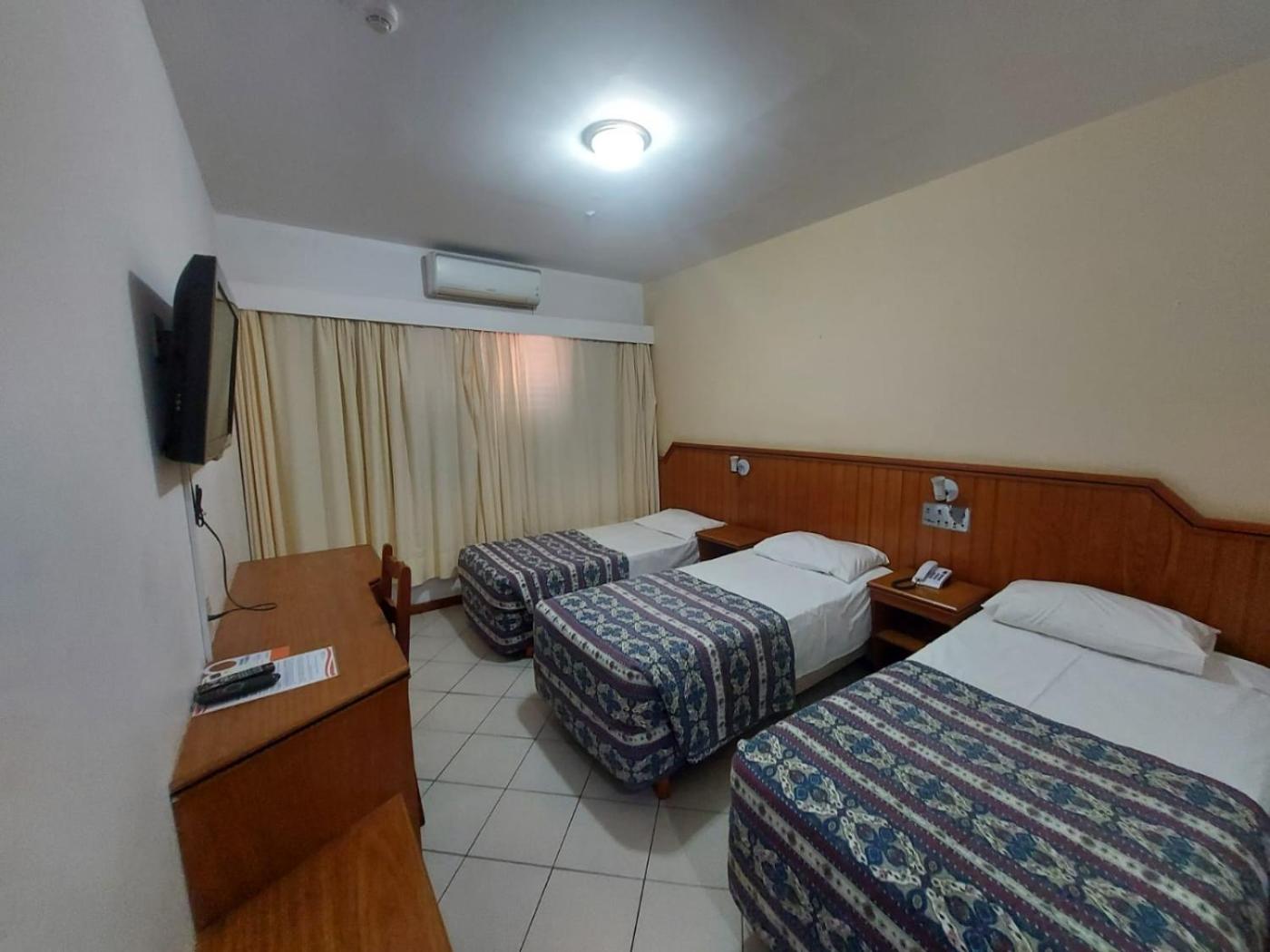 Quarto Triplo Básico. Offering free toiletries, this triple room includes a private bathroom with a shower and a hairdryer. The air-conditioned triple room offers a flat-screen TV with cable channels, a minibar, a dining area, a wardrobe as well as city views. The unit has 2 beds. ;