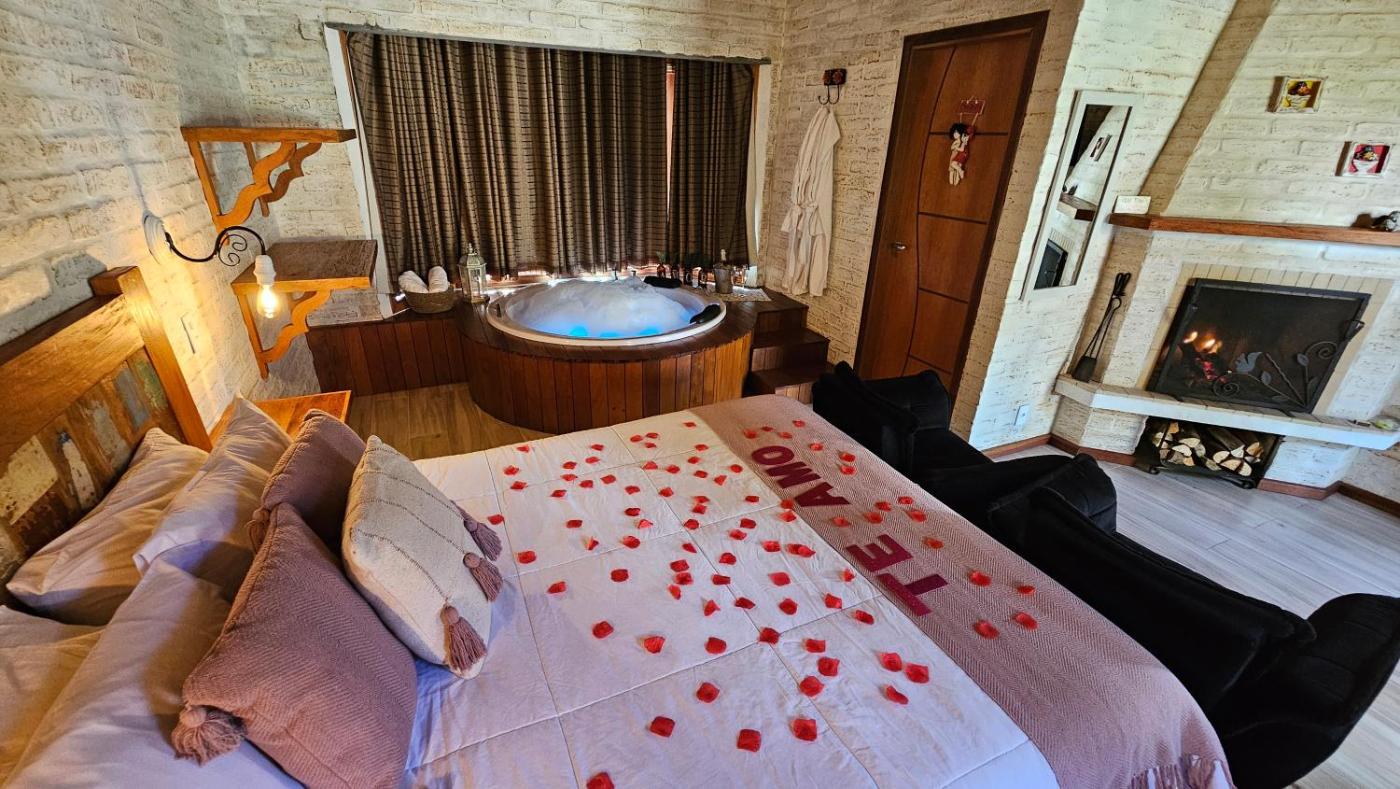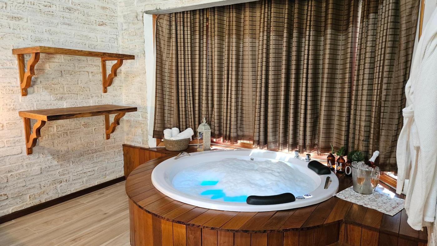 Suite com Banheira de Hidromassagem. This suites special features are the hot tub and the fireplace. Boasting a private entrance, this suite also features 1 separate bedroom and 1 bathroom with a bath and a shower. Featuring a balcony with garden views, this suite also features a minibar and a flat-screen TV with satellite channels. The unit has 1 bed. ;