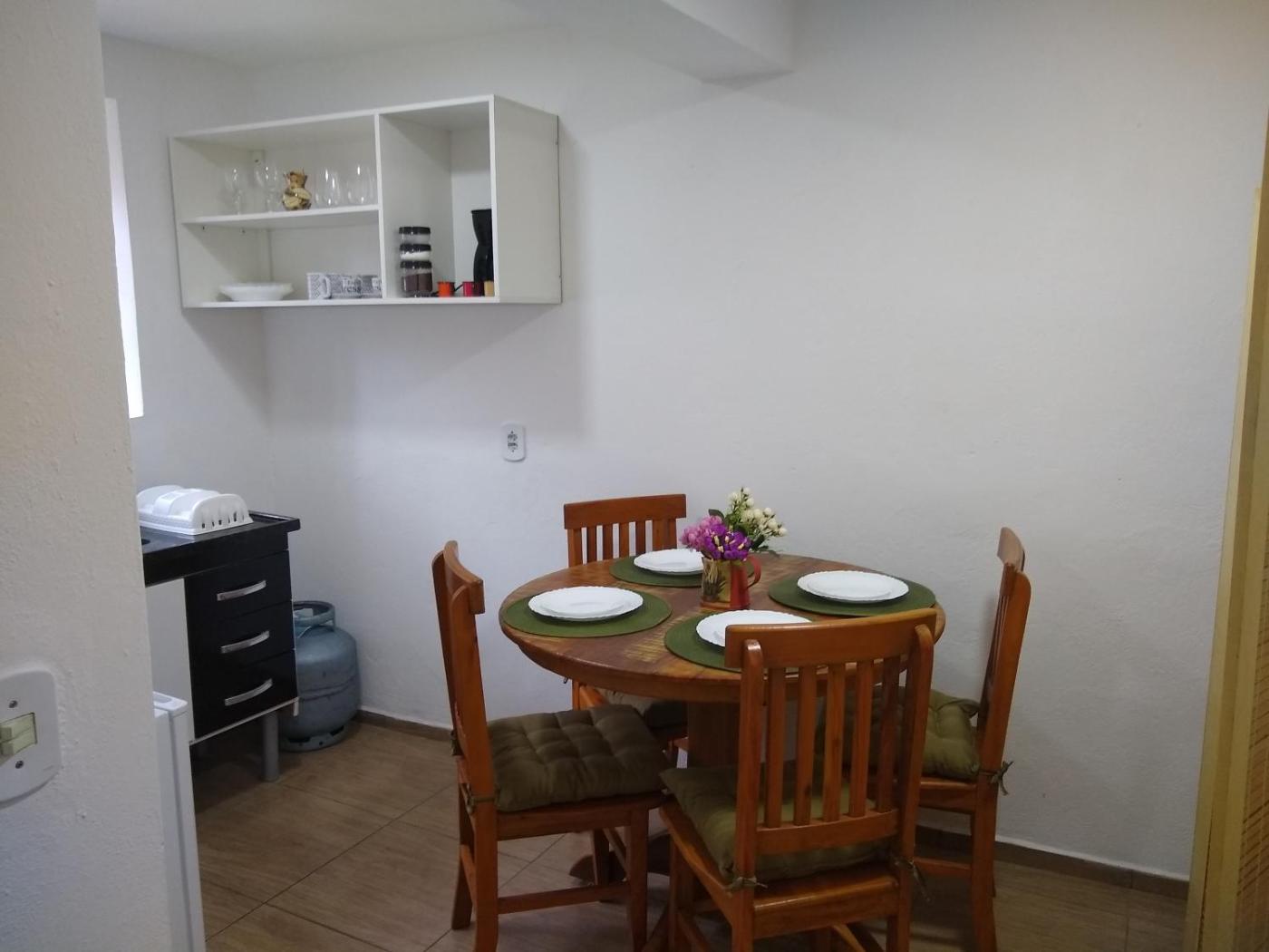 Chalé. The fireplace is a top feature of this chalet. This chalet comes with 1 bedroom, kitchen, a terrace and 1 bathroom with a shower. Guests can make meals in the kitchen that features a stovetop, a refrigerator, kitchenware and a microwave. Boasting a balcony with garden views, this chalet also features a private entrance and a flat-screen TV with cable channels. The unit has 1 bed. ;