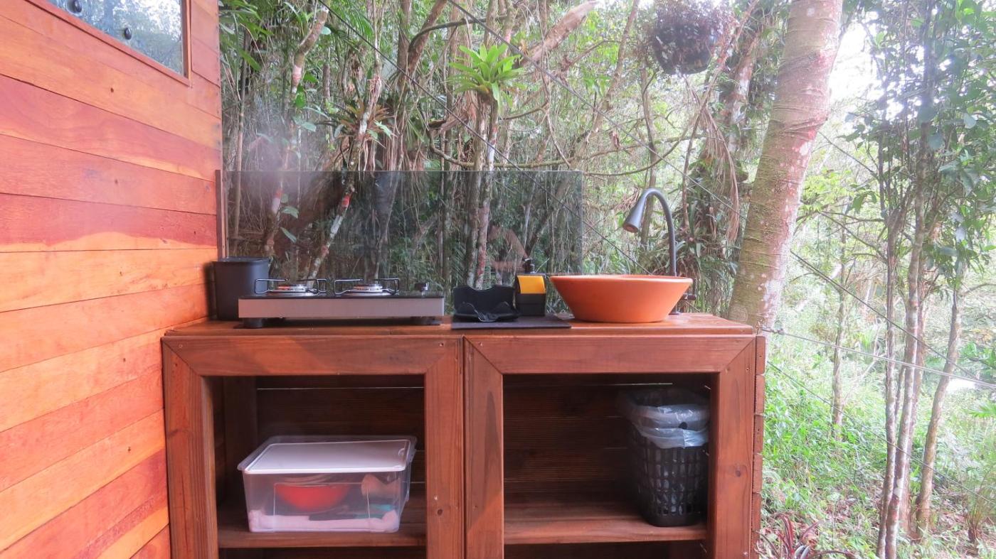 Chalé com 1 Quarto. The chalet has 1 bedroom and 1 bathroom with a shower and free toiletries. In the well-equipped kitchenette, guests will find a stovetop, a refrigerator, kitchenware and a tea and coffee maker. This chalet features a minibar, flat-screen TV, garden views, as well as winechampagne for guests. The unit has 1 bed.