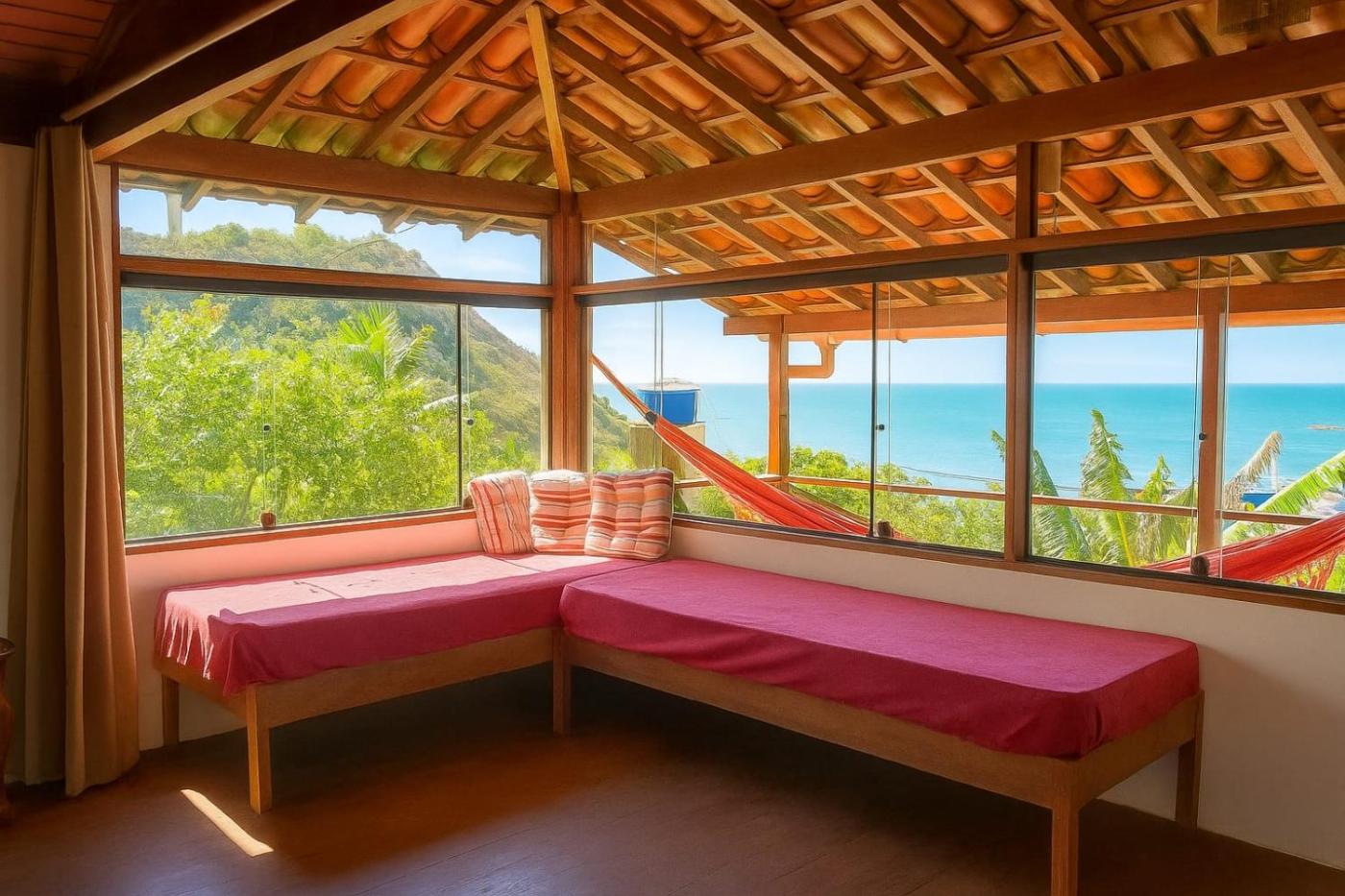 Casa com 2 Quartos. This air-conditioned holiday home includes 1 living room, 2 separate bedrooms and 1 bathroom with a shower. In the fully equipped kitchen, guests will find a stovetop, a refrigerator, kitchenware and an oven. The holiday home has a terrace with outdoor furniture and sea views to relax in after a busy day. The unit has 5 beds. ;