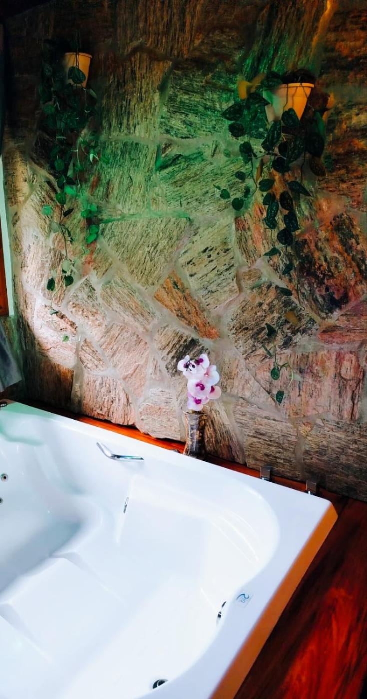 Chalé. The hot tub and fireplace are the special features of this chalet. Featuring a private entrance, this chalet consists of 1 living room, 1 separate bedroom and 1 bathroom with a bath and a shower. Meals can be prepared in the well-fitted kitchen, which is equipped with a stovetop, kitchenware, a microwave and a tea and coffee maker. Boasting a balcony with garden views, this chalet also provides a minibar and a flat-screen TV with streaming services. The unit offers 1 bed.