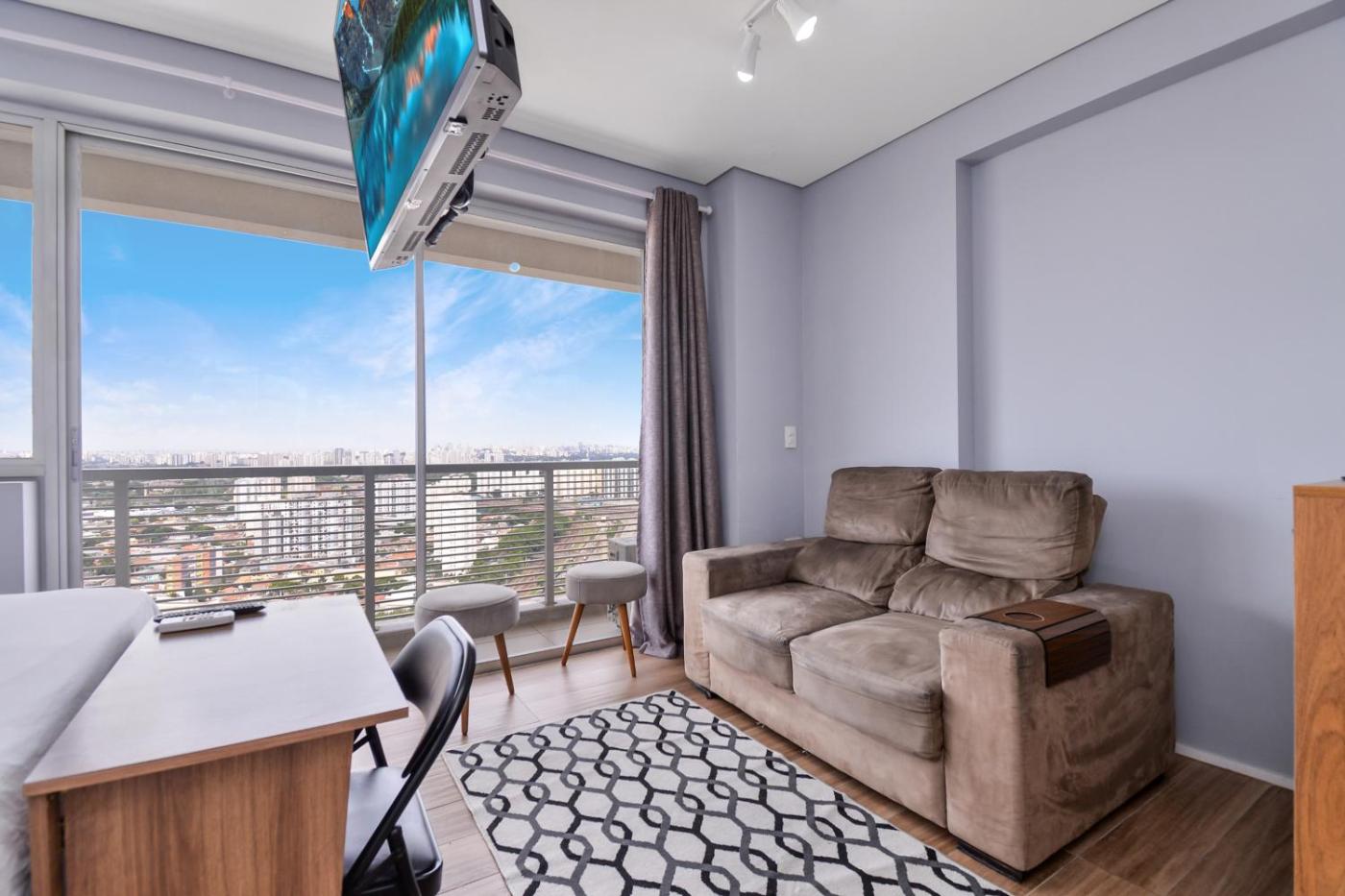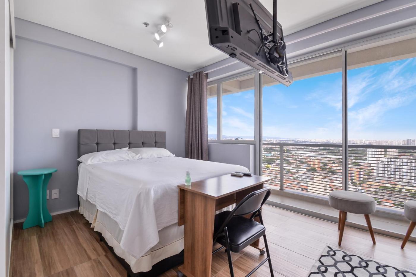 Apartamento com 1 Quarto. The air-conditioned apartment has 1 bedroom and 1 bathroom with a shower and a hairdryer. The fully equipped kitchen features a stovetop, a refrigerator, kitchenware and a microwave. Boasting a balcony with city views, this apartment also features a coffee machine and a flat-screen TV. The unit has 1 bed.
