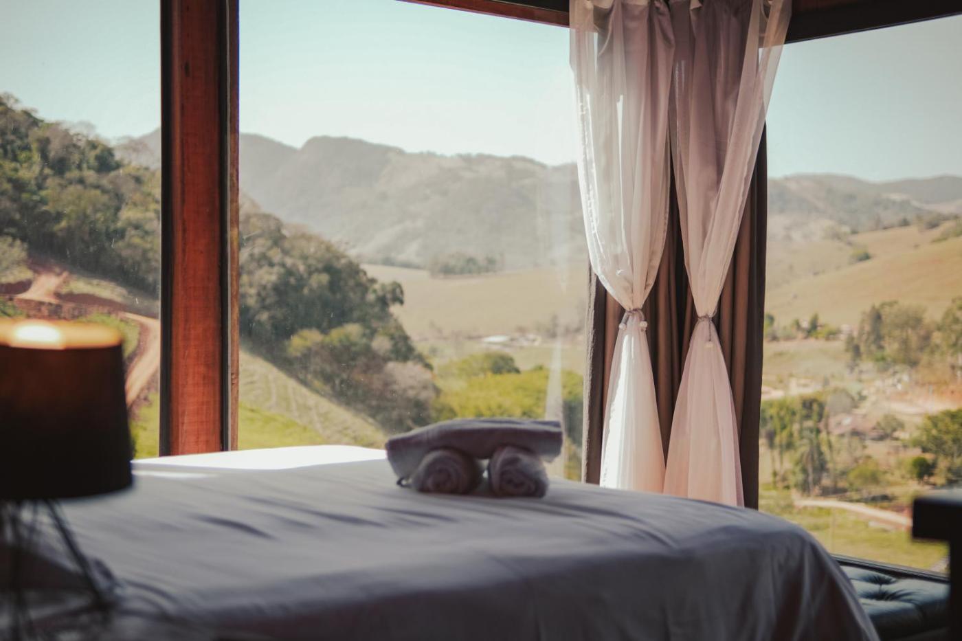 Chalé. This chalets standout feature is the fireplace. This spacious chalet includes 1 living room, 1 separate bedroom and 1 bathroom with a bath and free toiletries. Guests will find a stovetop, a refrigerator, kitchenware and an oven in the kitchen. The chalet also features a barbecue. This chalet has air conditioning, flat-screen TV with streaming services, lake views, as well as winechampagne for guests. The unit has 2 beds.