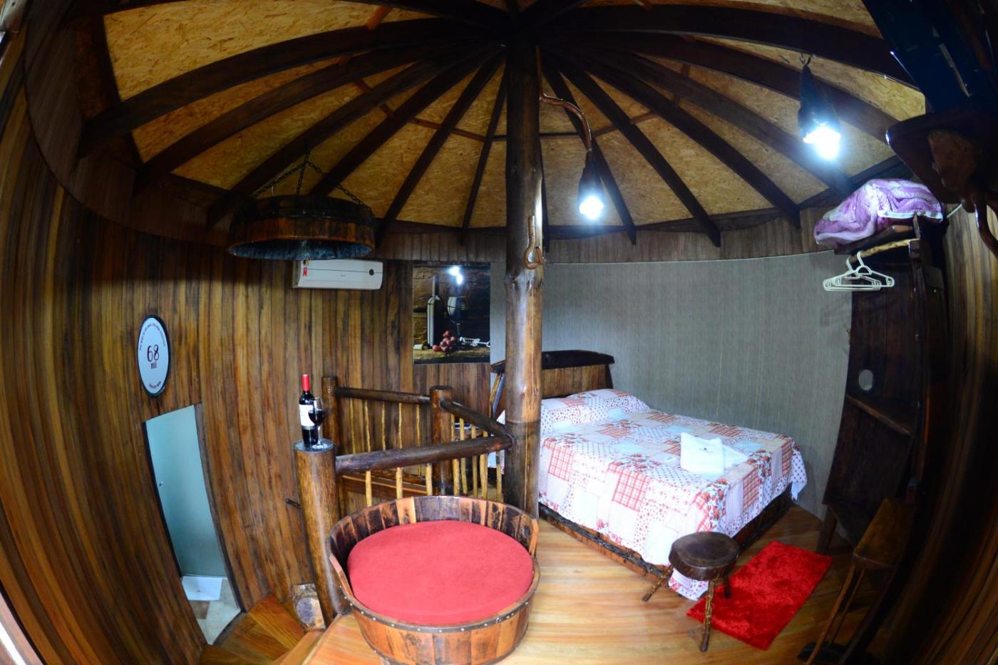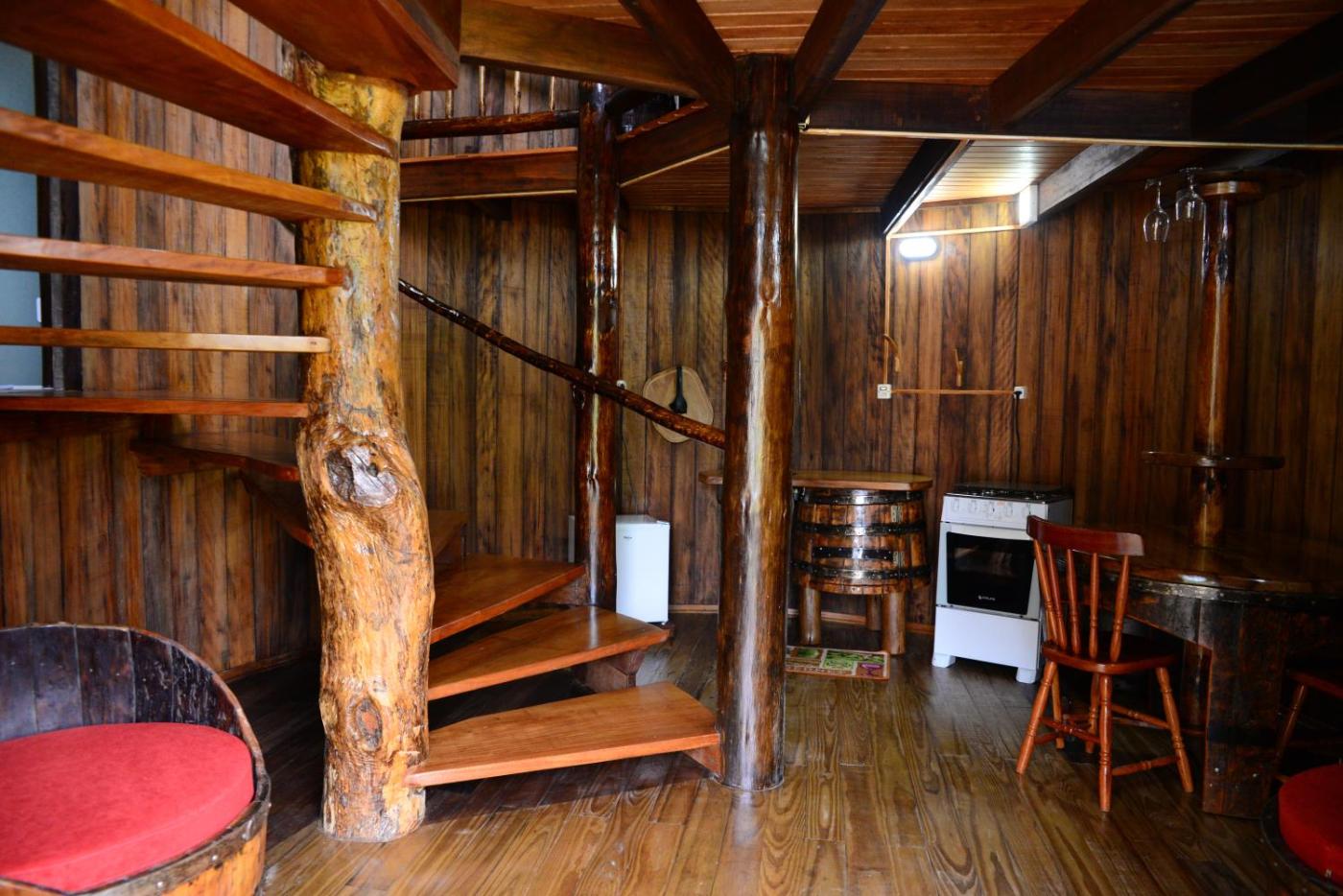 Chalé com 1 Quarto. Boasting a private entrance, this air-conditioned chalet includes 1 living room, 1 separate bedroom and 1 bathroom with a shower and a hairdryer. The chalets kitchen, which has a refrigerator and kitchenware, is available for cooking and storing food. Featuring a balcony with garden views, this chalet also offers a minibar and a flat-screen TV. The unit has 1 bed. ;