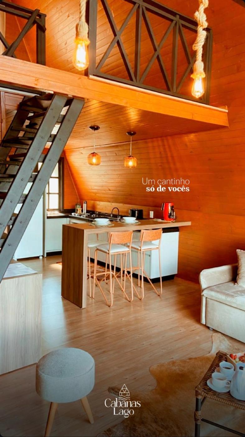 Chalé com 1 Quarto. This chalet consists of 1 living room, 1 separate bedroom and 1 bathroom with a shower and free toiletries. Guests will find a stovetop, a refrigerator, kitchenware and a microwave in the kitchen. The chalet also offers a barbecue. This chalet features air conditioning, flat-screen TV with streaming services, lake views, as well as winechampagne for guests. The unit offers 2 beds and 1 futon.