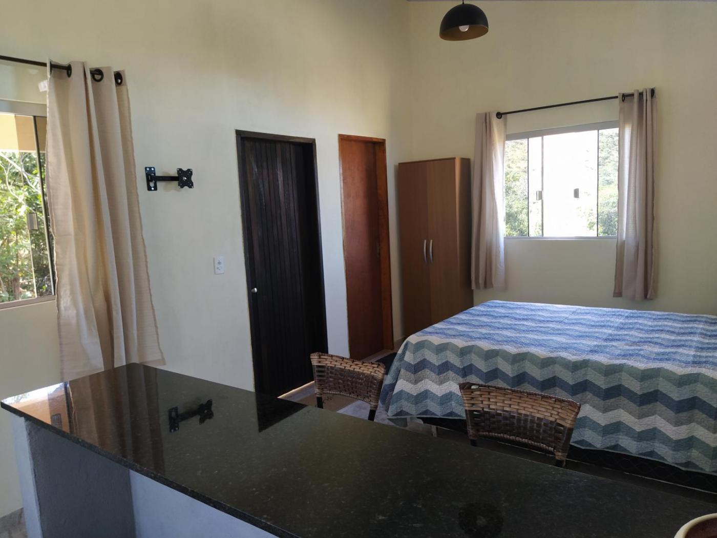 Chalé com 1 Quarto. The chalet has 1 bedroom, 1 bathroom, a kitchen and a seating area. Guests will find kitchenware and a toaster in the kitchen. The chalet also includes a barbecue. Boasting a balcony with garden views, this chalet also features a tea and coffee maker and a flat-screen TV with streaming services. The unit has 1 bed.