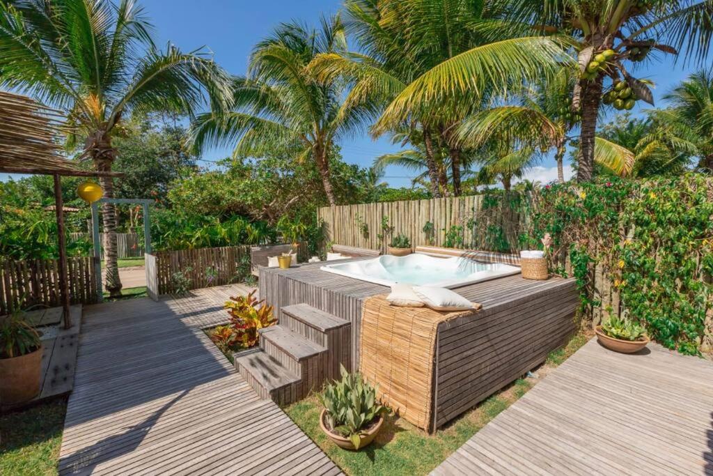 Casa com 2 Quartos. This holiday homes special feature is the hot tub. Featuring a private entrance, this air-conditioned holiday home consists of 1 living room, 2 separate bedrooms and 3 bathrooms with a shower and a hairdryer. The well-fitted kitchen features a refrigerator, kitchenware and an oven. Boasting a balcony with garden views, this holiday home also provides a seating area and a flat-screen TV with satellite channels. The unit offers 5 beds.