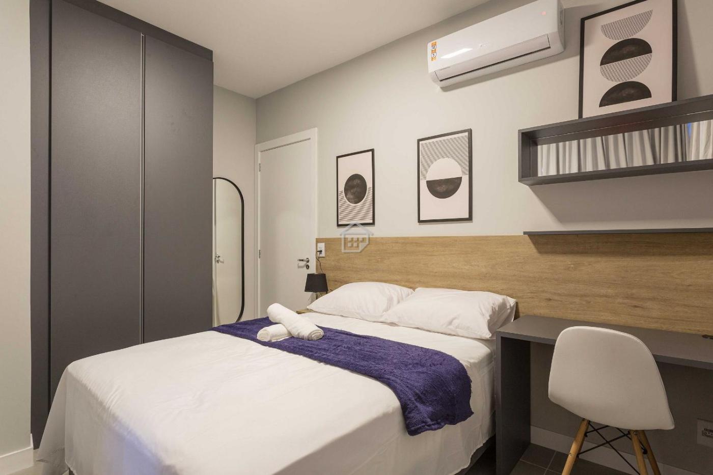 Estúdio. In the well-equipped kitchen, guests will find a stovetop, a refrigerator, kitchenware and an oven. This studio is air-conditioned and has a seating area with a TV, a washing machine, a coffee machine, a dining area, as well as a wardrobe. The unit has 1 bed. ;
