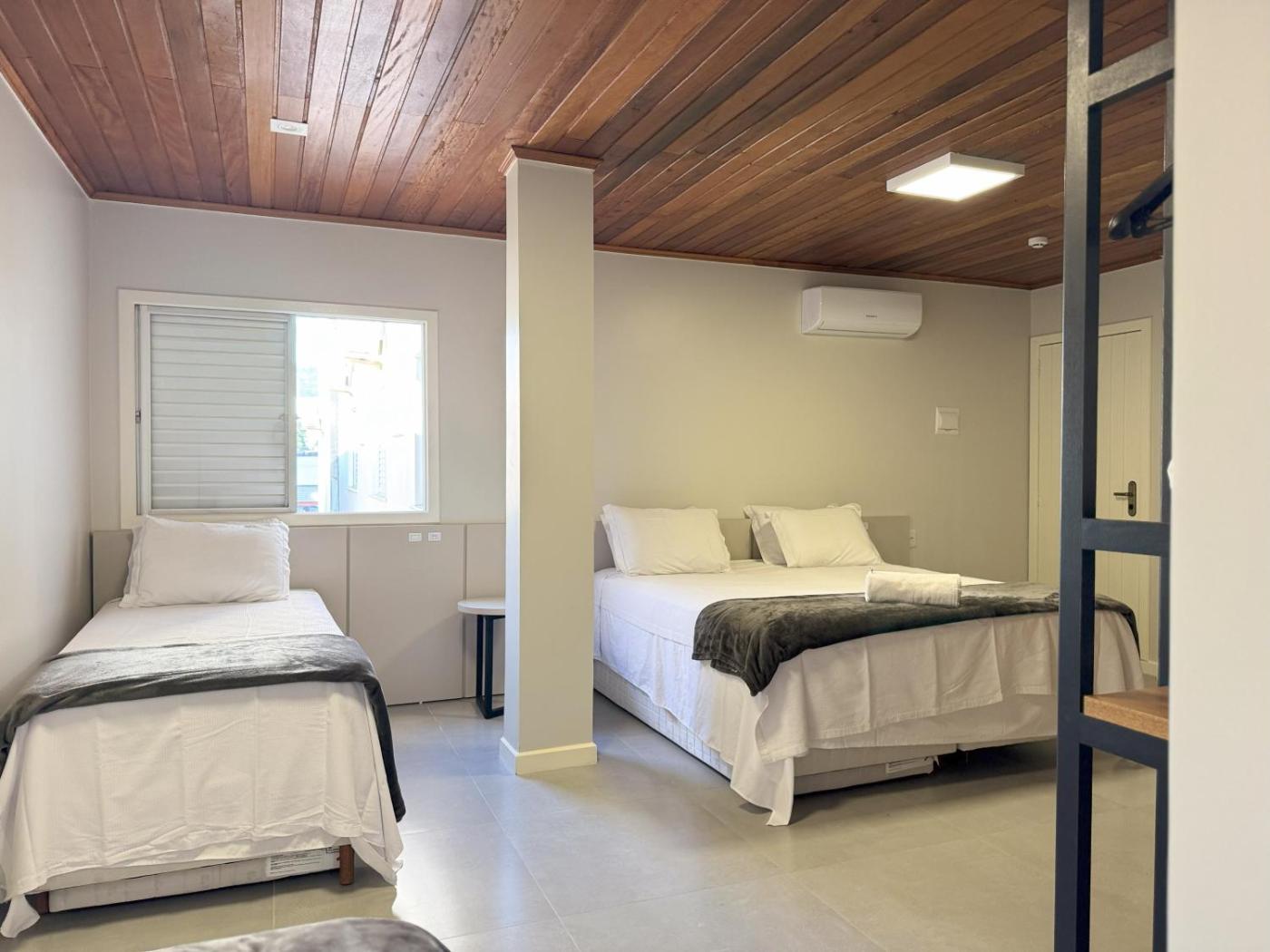 Quarto Familiar. This air-conditioned family room is comprised of a flat-screen TV with satellite channels and a private bathroom. The unit has 3 beds and 2 futons.