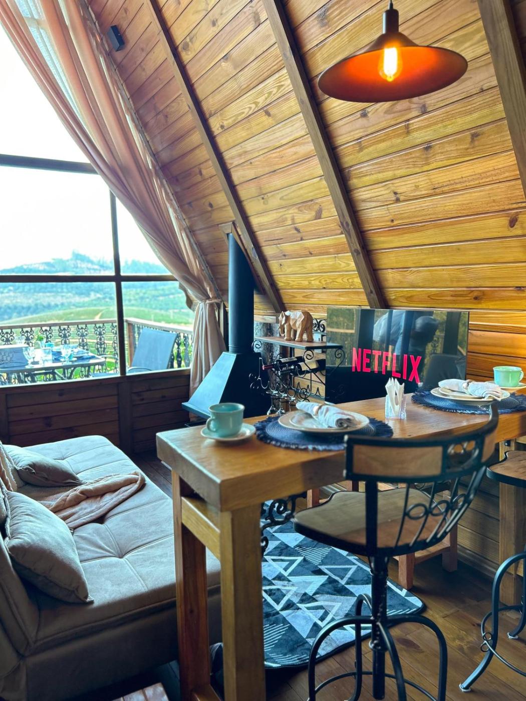 Chalé. Guests will have a special experience as this chalet offers a hot tub and a fireplace. Featuring a private entrance, this air-conditioned chalet is comprised of a kitchen, 1 bedroom and 1 bathroom with a bath and a shower. Guests will find a stovetop, kitchenware, an oven and a microwave in the well-fitted kitchen. The chalet also has a barbecue. This chalet features soundproof walls, flat-screen TV with streaming services, garden views, as well as winechampagne for guests. The unit offers 1 bed.